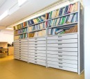 Согласно запросу заказчика внутреннее содержание стеллажей комбинируется так, чтобы было максимально удобно для дальнейшей работе с хранимым.